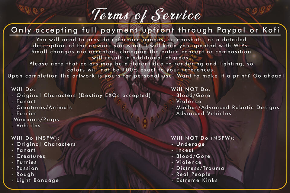 WILL NOT be accepted after the sketch is finalized.COMMISSIONS ARE OPEN